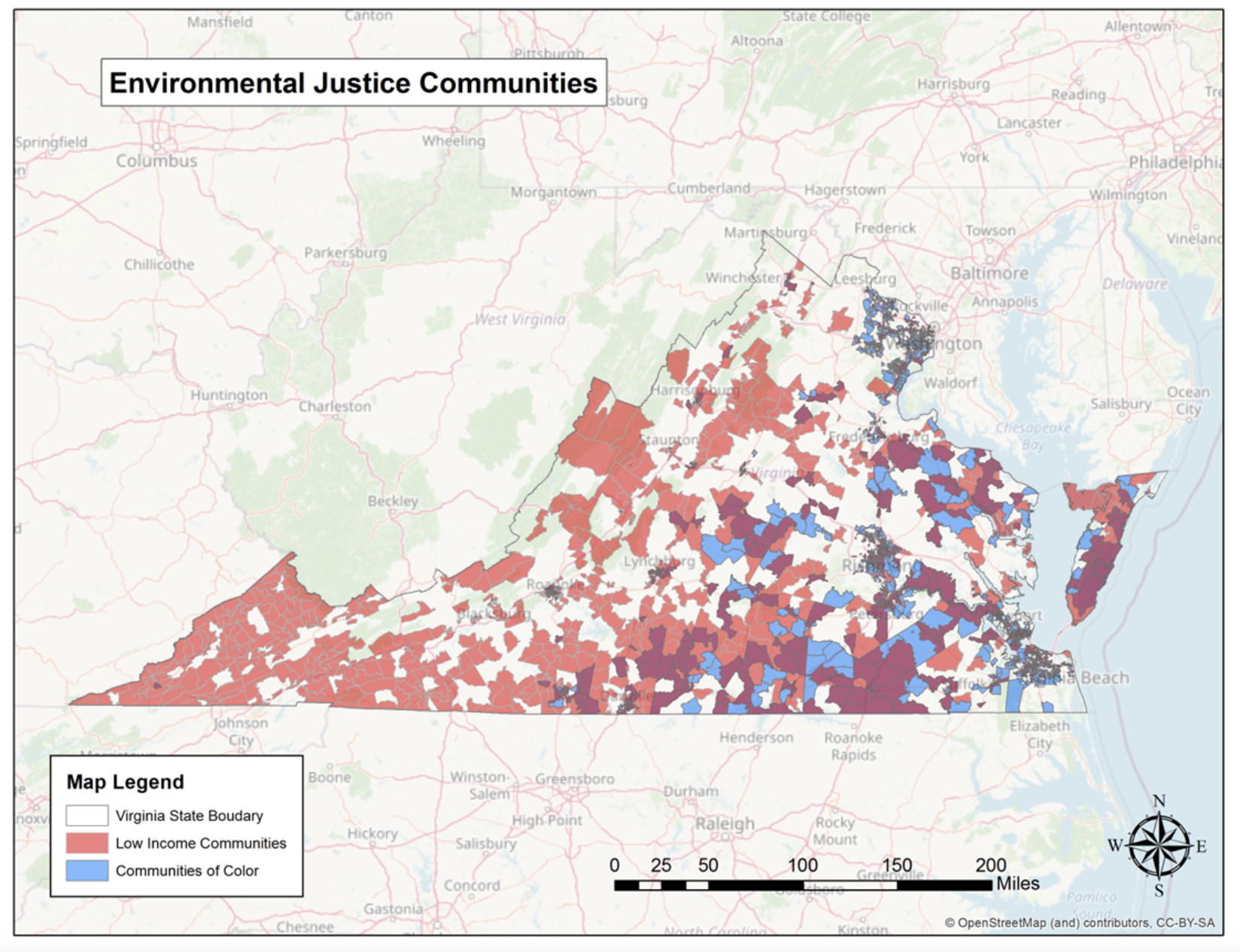 A map made by Mountain Valley Watch shows the “blast zones” along the pipeline route, revealing land that is at risk of being impacted if the pipeline ever exploded. Several of these “blast zones” are in environmental justice communities in southern Virginia.
