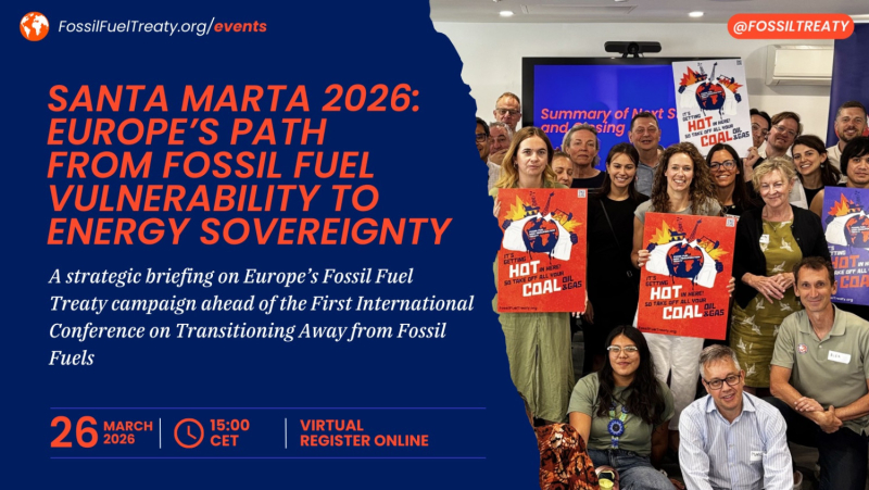 This webinar is a strategic briefing to mobilise the European network around the First Conference on Transitioning Away from Fossil Fuels. We will explore how to leverage the Santa Marta Conference to champion a binding Fossil Fuel Treaty, transforming Europe’s historical liability into diplomatic leadership.