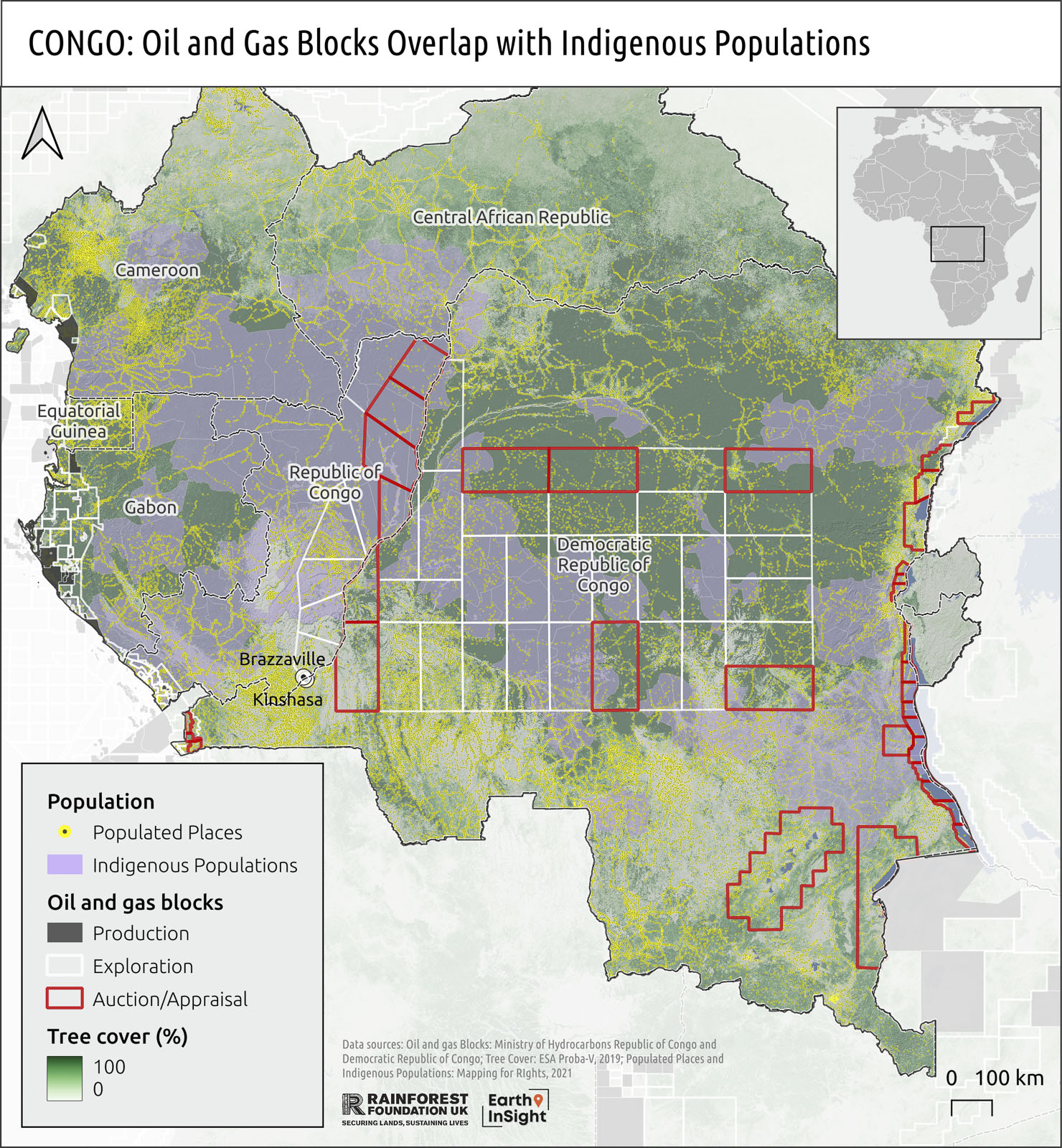 Much of the forest land throughout the DRC is inhabited by local communities, which have customary rights to the land. Congolese law states that these people must at the least be consulted, and Indigenous communities have the right to Free, Prior and Informed Consent to developments affecting their lands. The exploitation of oil – given the large intersection between the oil blocks and these people’s land – is a serious threat to the communities.