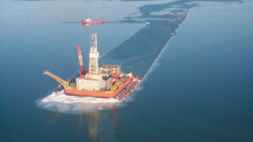 Of particular concern are the winter ice floes that threaten to overrun the artificial islands constructed for extraction activities and the undersea pipelines that transport the crude to shore. In 2005/2006, construction was forced to stop for four months due to ice movement.
