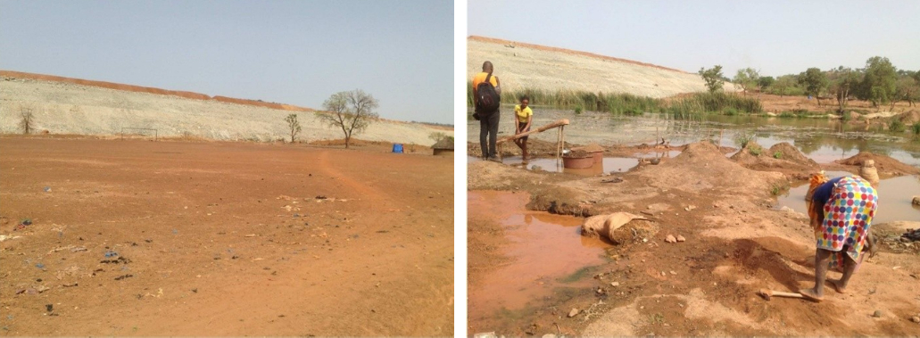 Impacts on soil erosion and agricultural land: The initial layers of soil, approximately 50 to 100 metres deep, in the mining area are transformed into sandy sediment during the blasting and transportation process. This sediment accumulates in waste rock piles surrounding the open pits, which experience rapid erosion. Consequently, nearby properties, including streams and cultivated fields, are affected by sediment runoff. The proximity of these piles to residential areas, such as Carrefour and the mine camps, poses risks to people during the rainy season. Garanke Mady's fields have suffered severe damage, rendering them unusable.